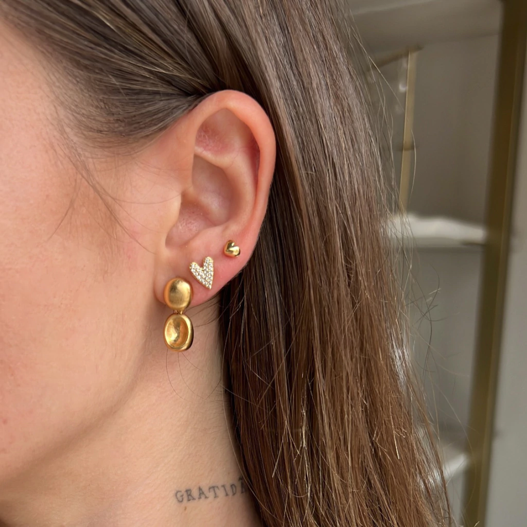 Brinco acetinado fosco com retângulo ovalpendurado, uma peça moderna e elegante. O formato retangular oval pendurado traz um toque contemporâneo e sofisticado, ideal para quem gosta de acessórios diferenciados. O efeito acetinado proporciona um visual discreto, mas cheio de estilo. Combina bem com looks casuais e formais, tornando-se uma escolha prática para diversas ocasiões. Com banho em ouro 18 k. Antialérgico, apropriado para peles sensíveis.